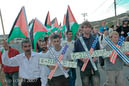 Israel carves these highways thru the West Bank for Israeli use only. They truncate the confiscated Palestinian land they were built on. With participation from internationals and Israeli activists, Palestinians non violently resist these illegal creations. The International Solidiary Movement and (Israeli) Anarchists Against the Wall contribute to the action.