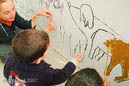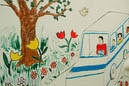 The Friends' Play Center is operated by the Ramallah Friends School, and is located in one of the several refugee camps in Ramallah. Thanks to Rosi Greenberg, kids and internationals designed and painted this mural—suggesting their dreams, not their reality.