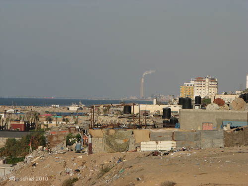 Gaza City in the foreground, the Israeli city of Ashkelon in the background