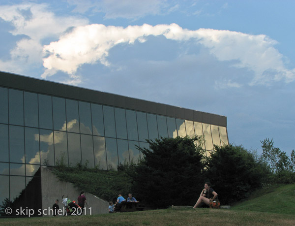 700 Quakers assemble at Bryant University for the 350th New England Yearly Meeting sessions. To do what? Meet in small groups for discernment on the main theme, "350 Years of New England Friends: Called to Heal a Broken Earth," large groups to discuss business and other topics (youth leadership being a very important one), caring for our children, singing, eating, praying, walking, swimming, and "anything you got now."