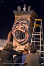 "After Faust 2's contract with the devil came to an end -- because the quest had been fulfilled and satisfaction had been achieved -- Faust 2 died. But the demand for more light which Goethe issued at his own death requires a new model of Faust, an actor in the history of light, a conspirator who pursues the disordering of the existing order of life, & sides with the Proletariat's demand for the radicalization of leisure. Gargoyles are employed to manage the uneasy masses. Both devil & angel, disguised as undercover agents, accompany Faust 3's journey through the mess of the modern empire all the way to the glorious final appearance of the Here." (Bread & Puppet)