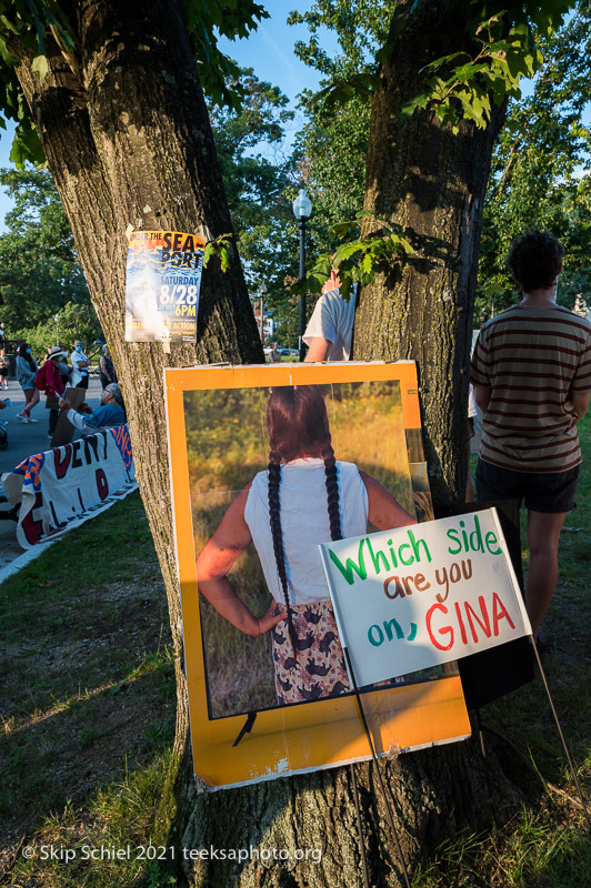 After a rally along one of the most water-related sites in Boston, Jamaica Pond, we marched to the Boston home of President Biden's climate crisis advisor Gina McCarthy. One year ago she tweeted: "I’m proud to join Indigenous leaders and climate advocates in urging @GovTimWalz to oppose Enbridge’s Line 3 tar sands pipeline and protect Minnesotans’ health, water, and land. The time for dangerous oil pipelines is over. Read our letter to #StopLine3." We delivered messages from the people, those at the rally, calling on her to honor to move the government to enforce treaty rights and respond to the climate crisis as she'd promised.